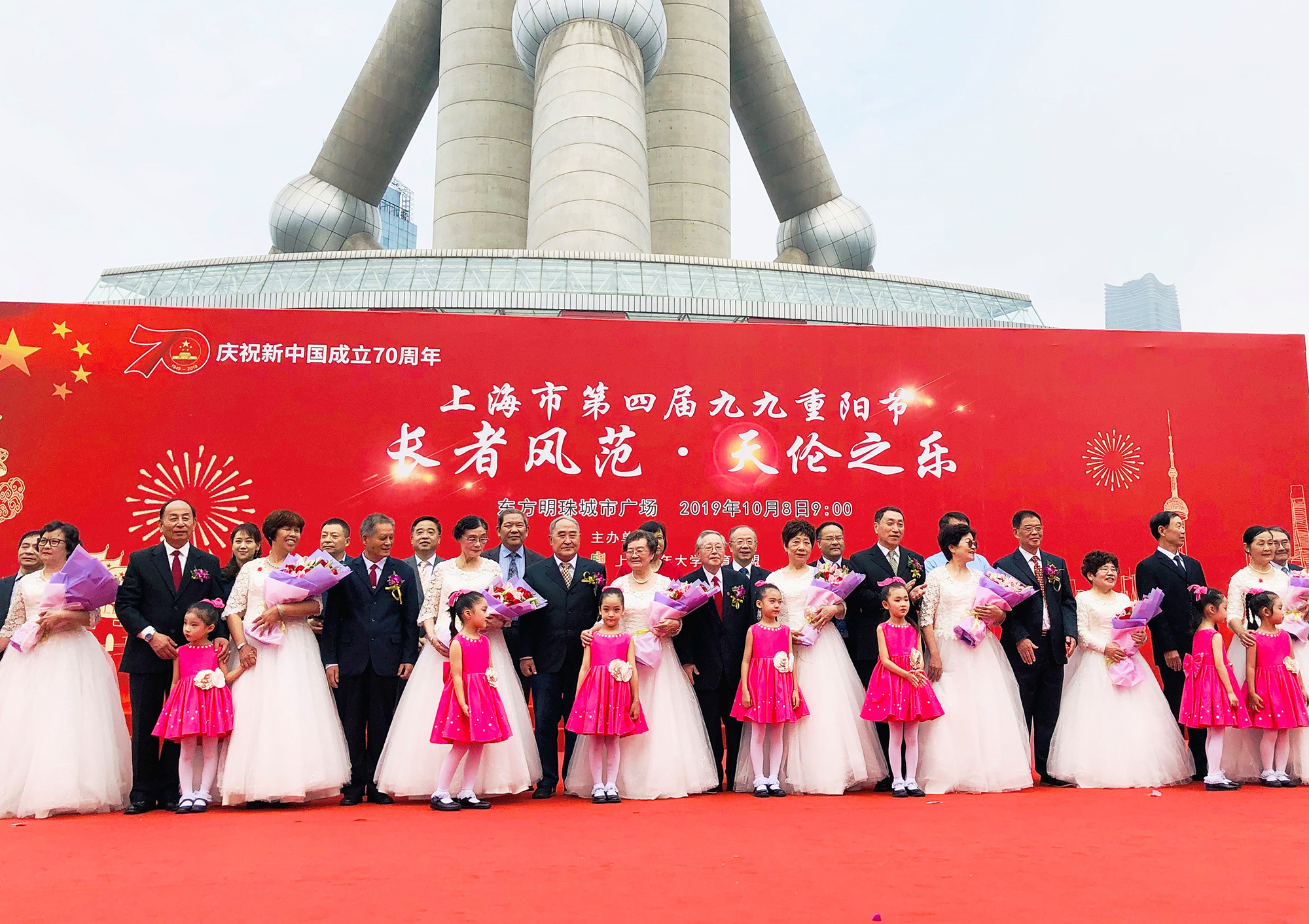 在“与新中国同龄”幸福伉俪金婚庆典仪式上,来自上海老年教育联盟的10对“与新中国同龄”幸福伉俪,白发皓首,芳华依旧。于美方、张秀兰老教授夫妇作为我校代表参加了活动,他们婚纱盛装、搀扶而行,在祝贺声中抒发着“与新中国同庚,与新时代同行”的家国情怀,获得现场一片欢呼。