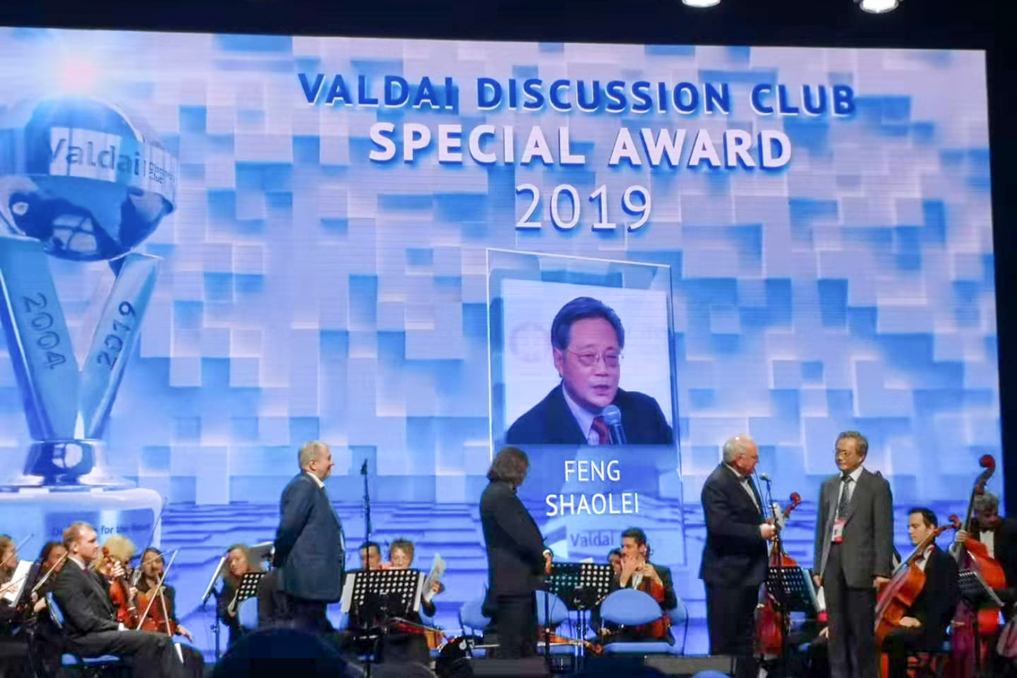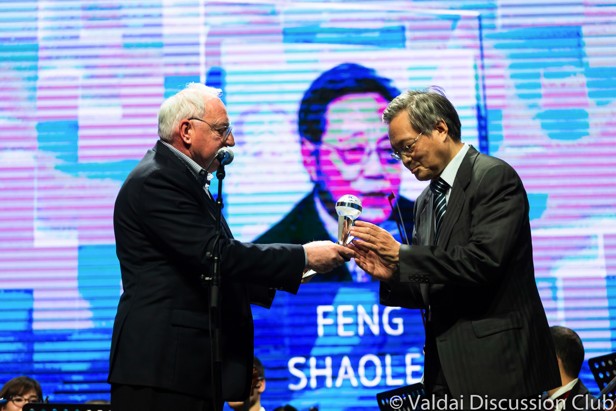 9月30日晚,会议主办方特别组织了一场年度颁奖晚会。今年的“瓦尔代贡献奖”授予中国俄苏问题专家、华东师大俄罗斯研究中心(教育部人文社科重点研究基地)、周边中心(上海市高校智库)主任冯绍雷教授,以表彰他在推动俄罗斯与国际问题研究、促进中俄友好合作事业中作出的努力。冯绍雷在致答谢辞中,讲到10月1日是中国的国庆节时,全场由衷爆发掌声,为新中国成立70周年送上真挚祝福。尤其值得一提的是,俄方活动主要负责人从本届论坛一开始,就多次在不同场合,主动提及祝贺新中国成立70周年大庆的来临,尽显东道主的诚意。