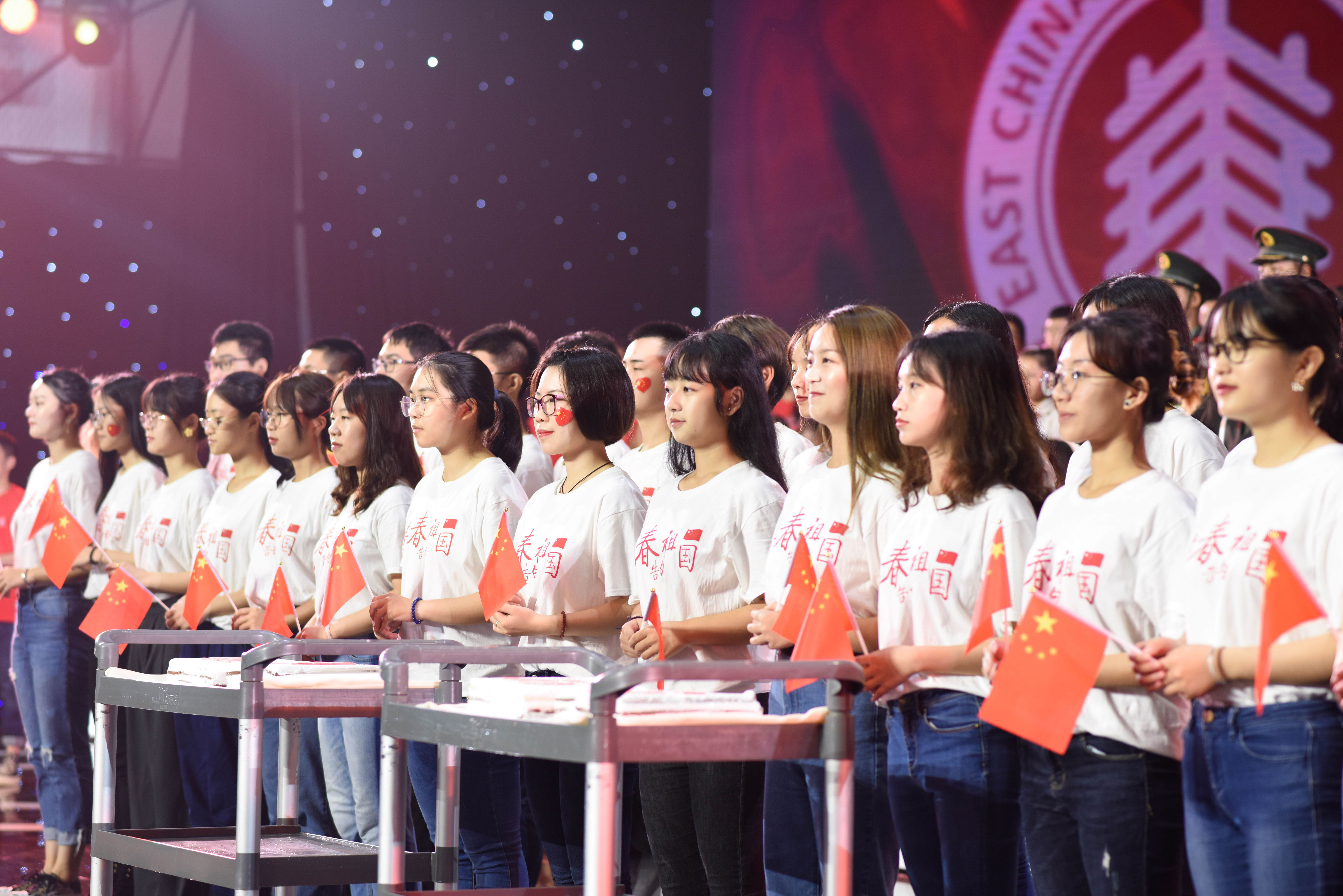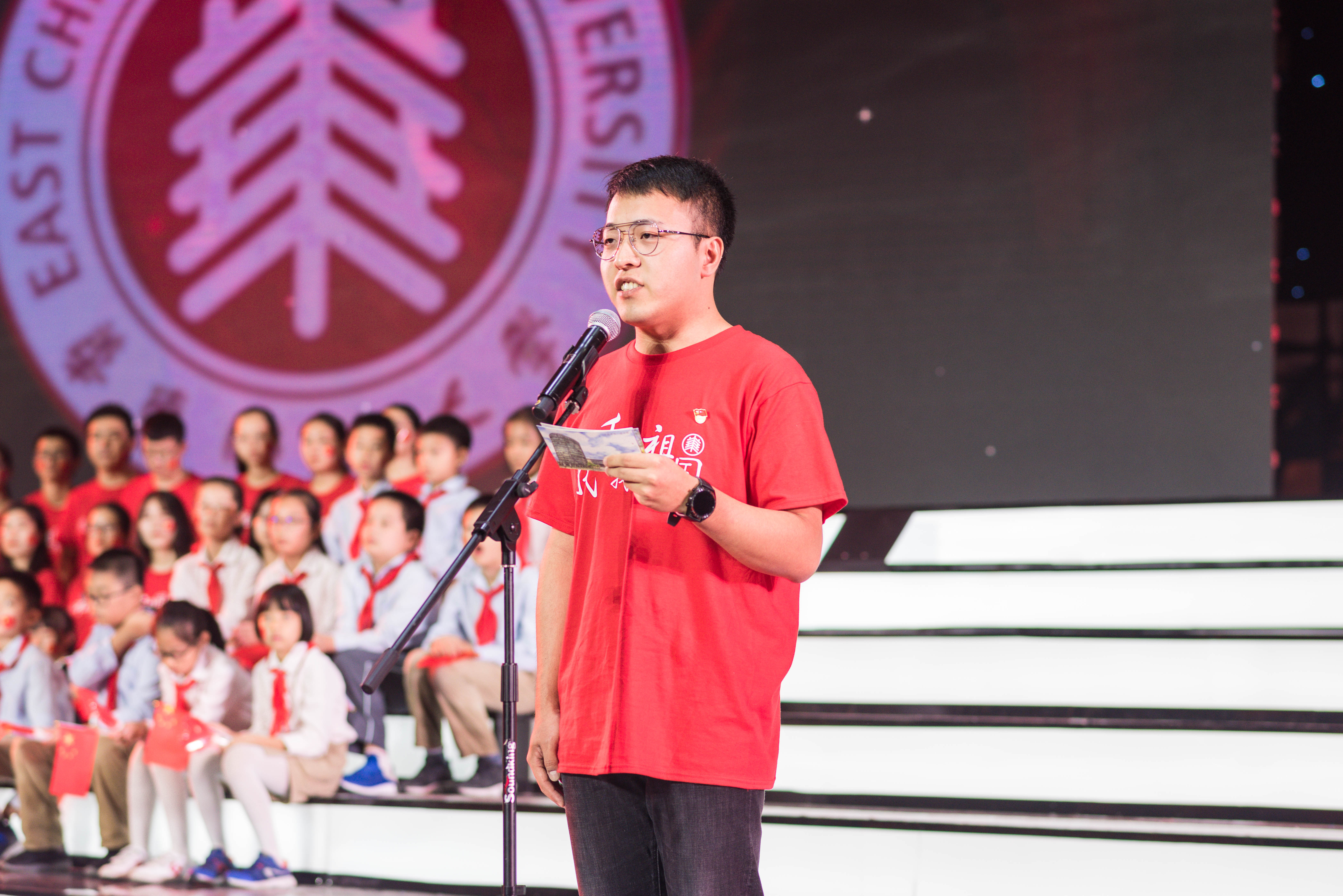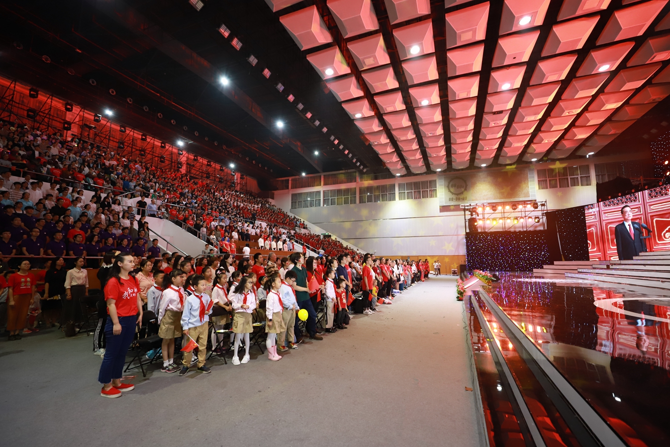 今天,新中国迎来七十华诞,华东师大师生在中山北路校区体育馆隆重举行“我与祖国共奋进·庆祝新中国成立70周年”主题活动。盛世如今,唱响礼赞新中国、奋进新时代的青春主旋律。