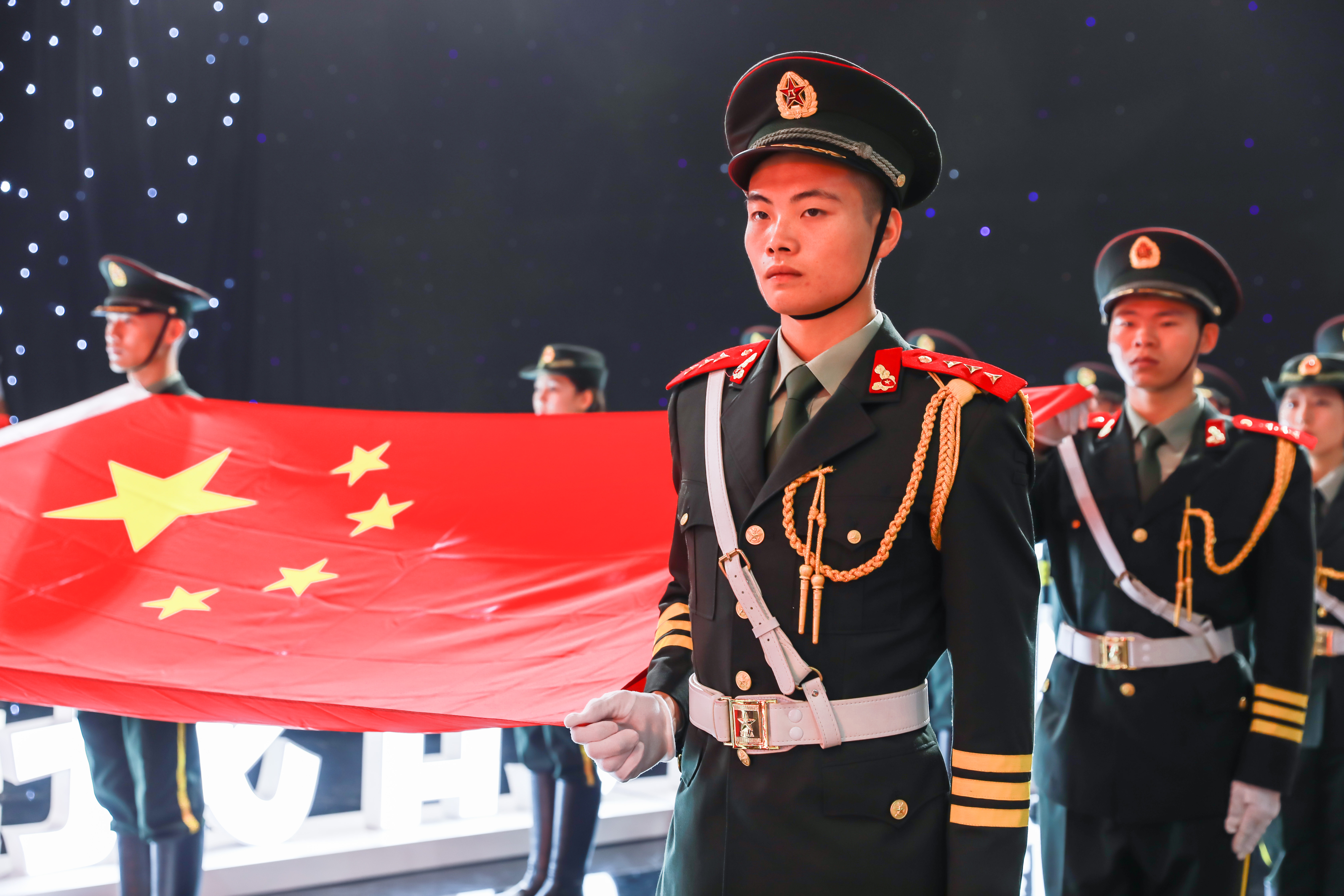 现场巨幅国旗徐徐展开