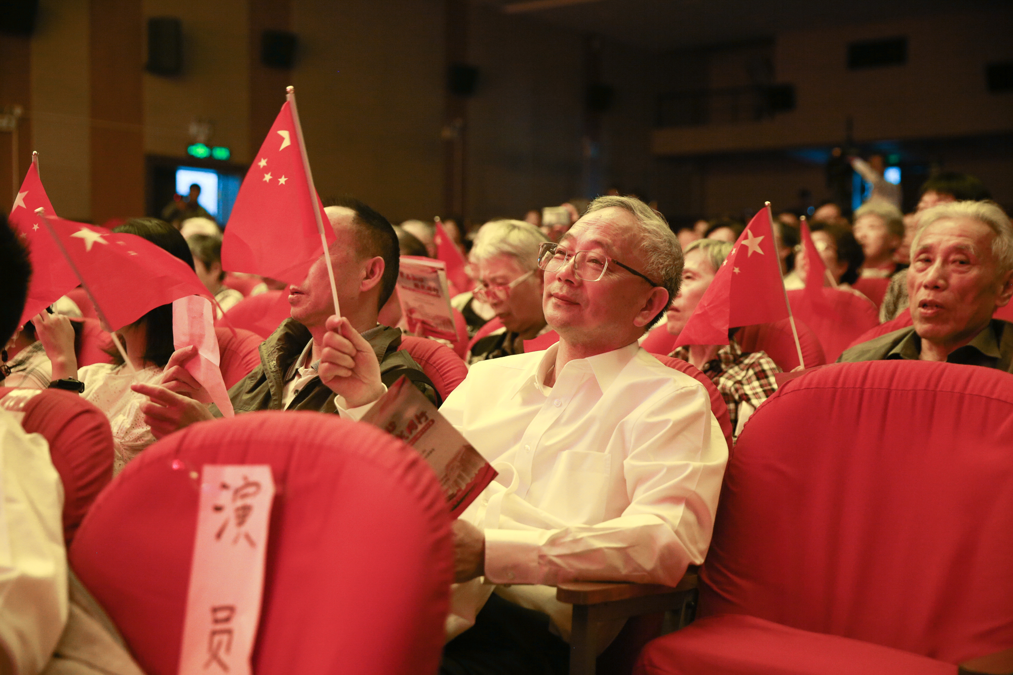 童世骏、王宏舟、曹友谊与7个民主党派、6个统战团体负责人一同登台,朗诵诗歌《今日之日,芳菲华彩》,深情歌颂了新中国成立70年来的发展成就,芳菲一曲献给祖国,盛世诗篇响彻全场。