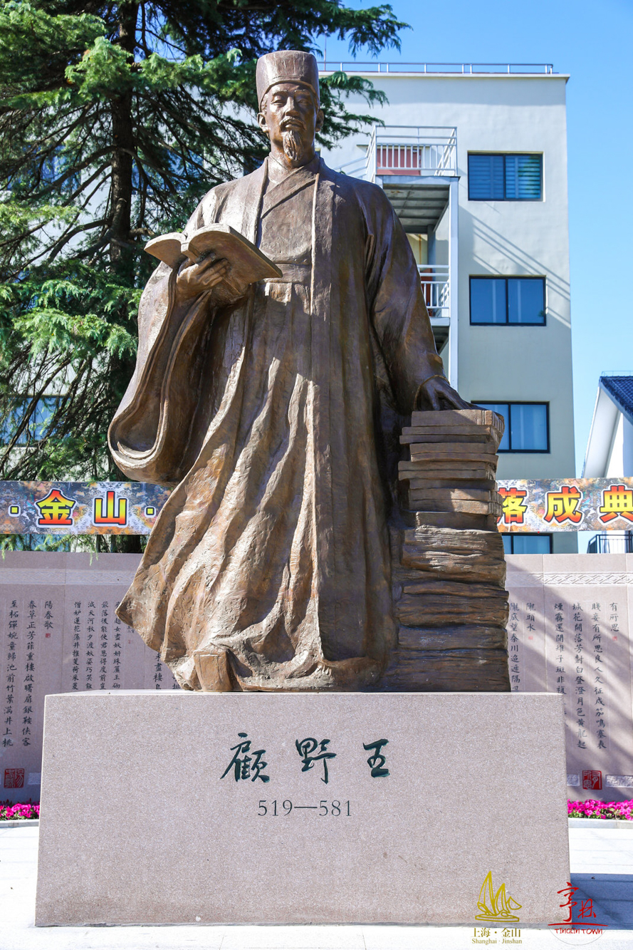 顾野王(519-581年),原名顾体伦,字希冯,祖籍吴郡海盐县亭林,生于吴县芦墟,侯景之乱后,回先祖顾雍故里亭林居住。为南朝梁陈间官员、文字训诂学家、地理学家、天文学家、史学家、文学家、诗人,擅丹青翰墨,熟音律,通经史,尊为“江东孔子”。著作《玉篇》是中国第一部楷书字典,乃“楷书始祖”。是亭林顾氏的代表人物,在海内外具有广泛和持续的影响力。