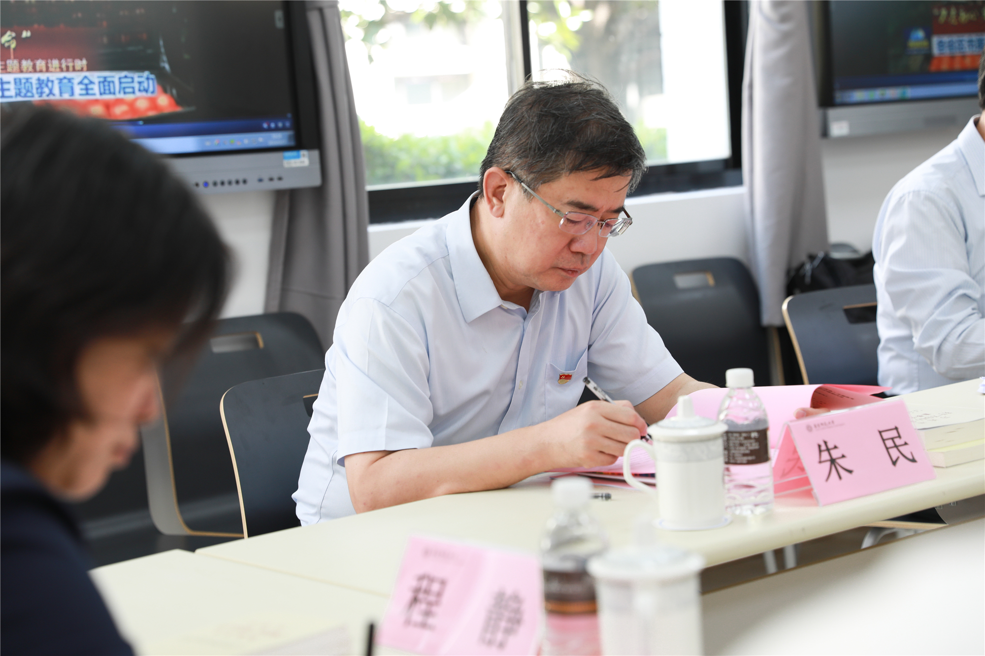 随后,校领导班子在文史楼110教室进行了集中学习研讨,童世骏、钱旭红、朱民、王宏舟四位校领导先后领学《习近平关于“不忘初心、牢记使命”重要论述选编》《习近平总书记关于教育的重要论述摘编》中关于初心和使命、关于坚持社会主义办学方向等相关篇目和论述,并深入交流了学习思考和体会。