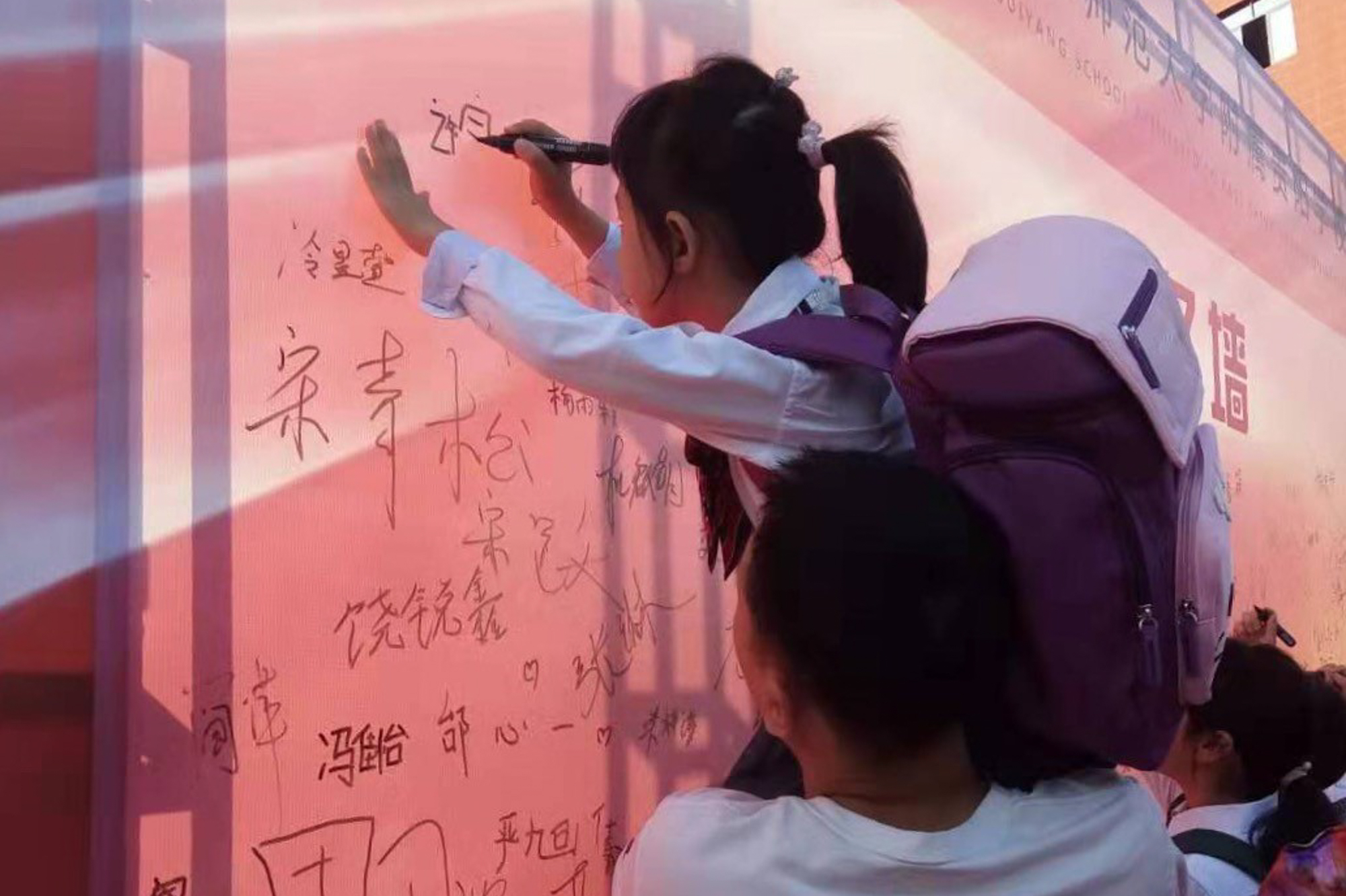 欢快的歌声在校园上空回旋,华东师范大学附属贵阳学校迎来了一批少年,他们在签名墙上欣喜地写下自己的名字,踏上一条卓越的大道,和爸爸妈妈们一起穿越那一扇“卓越之门”,从此开启一段不一样的人生旅途。