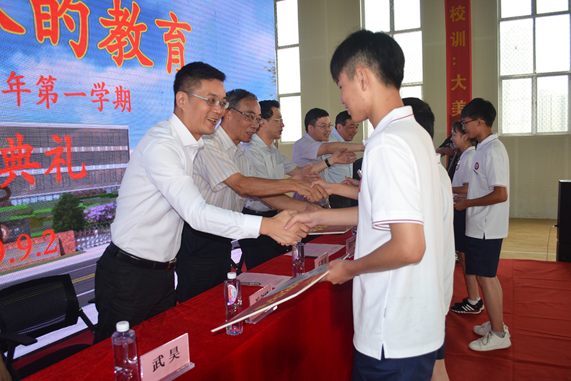 在秋风送爽的日子里,华东师范大学盐城实验中学在过渡校区举办了新生开学典礼。华东师范大学教育集团专家委员会主任、华东师范大学盐城实验中学理事长庄辉明,教育集团副主任冯剑峰应邀参礼,并为入学成绩优异的新生颁发了荣誉证书和奖学金。