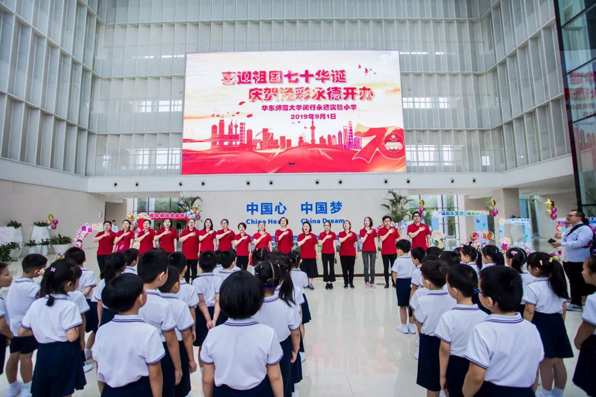秋风秋雨,拨动爱的心弦,充满新的希望。9月1日上午,华东师范大学闵行永德实验小学的50位新生和家长们集聚一堂,共同开启新生小学生活的新里程。庆典喜迎祖国七十华诞,团队庄严宣誓,表达“我们都是追梦人”的教育初心,一年级全体新生在国旗下宣誓,争做新时代好少年。