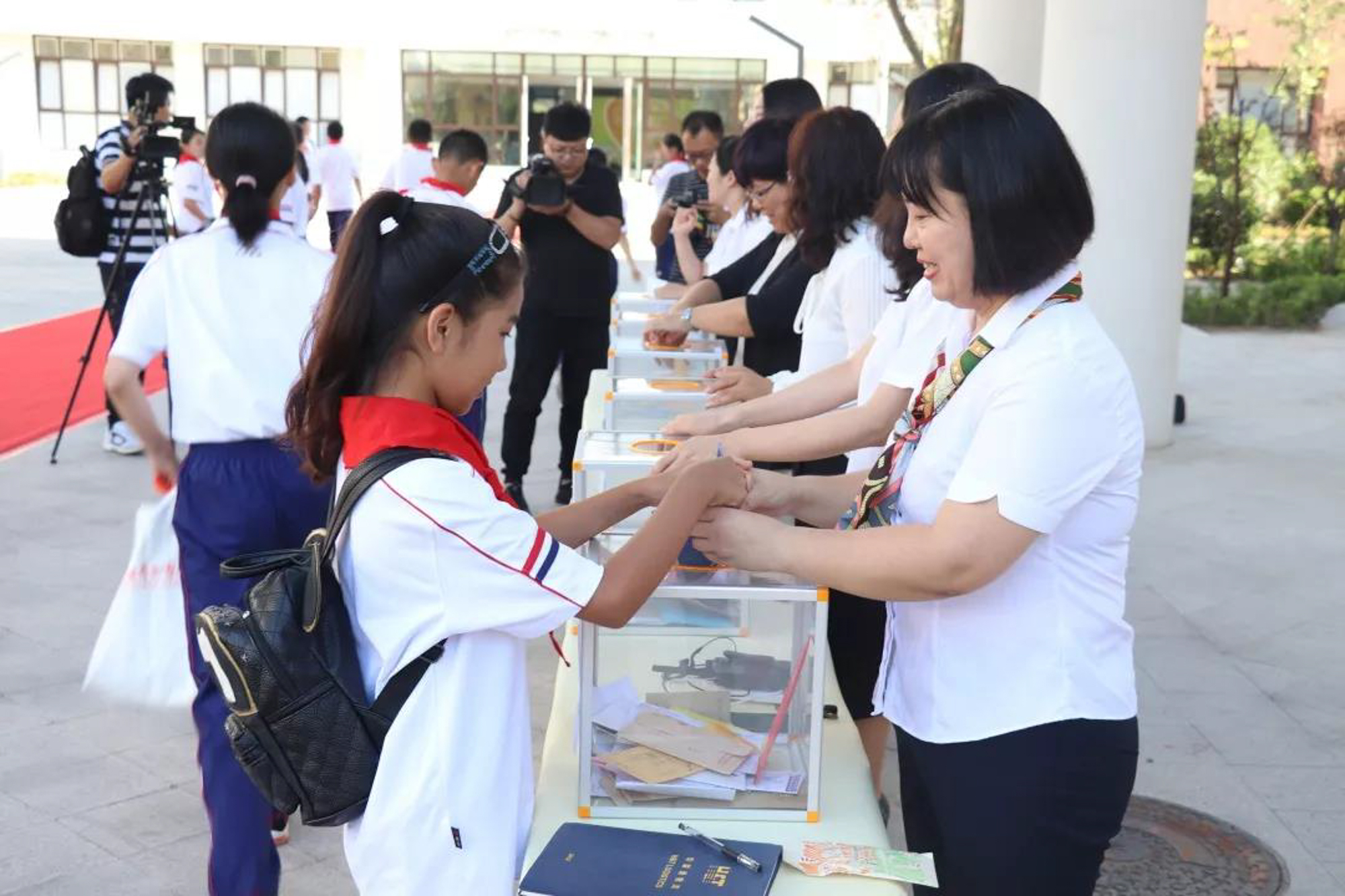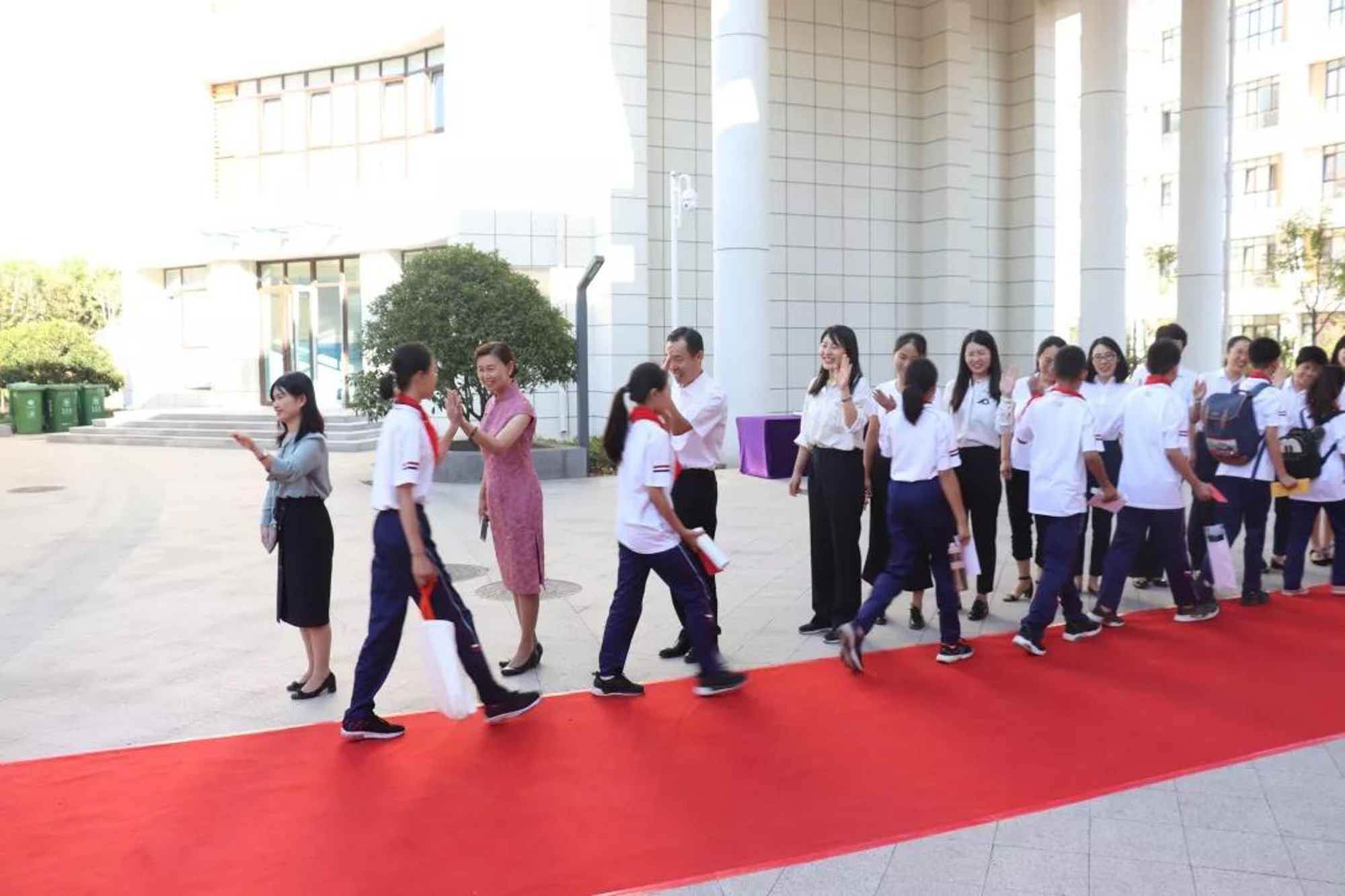 8月31日,华东师范大学附属青岛学校的学生们迈着坚定自信的步伐从红毯走来,与列队的学校领导和全体老师依次击掌,一句句“欢迎你”代表着老师对孩子们的热情期待;一声声“加油”是老师对学生最真挚的祝愿响亮的击掌声是学生对学校的承诺,更是对自己的承诺。学生们还满怀憧憬地投下了一封信——《致二十年后的自己》,愿能照亮他们的梦想,助力他们迎风远航。