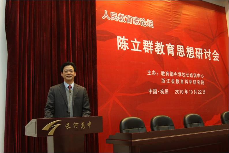 早在2010年10月,在教育部人事司的指导下,教育部中学校长培训中心在杭州长河高级中学,为其举办了题为“教育:爱与责任的事业”的人民教育家—陈立群校长教育思想研讨会,深受同行好评。研讨会上,教育部中学校长培训中心时任主任陈玉琨总结道:“陈立群是一位有着丰富的教育思想和执著的事业追求的校长,既管理着学校还亲自兼任班主任,用自己质朴的教育行动诠释者‘爱与责任’,数十年如一日,是一位有着崇高理想的教育守望者。”