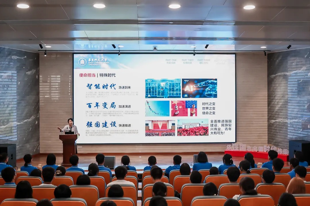 9月17日上午,华东师范大学党委书记梅兵以“承强国志向,做时代栋梁”为主题,为全体2025级本科生、研究生讲授“新生第一课”。万余名新生通过线上线下相结合的方式,在沉浸式校史校情学习中校准理想坐标、厚植家国情怀、勇担时代使命。