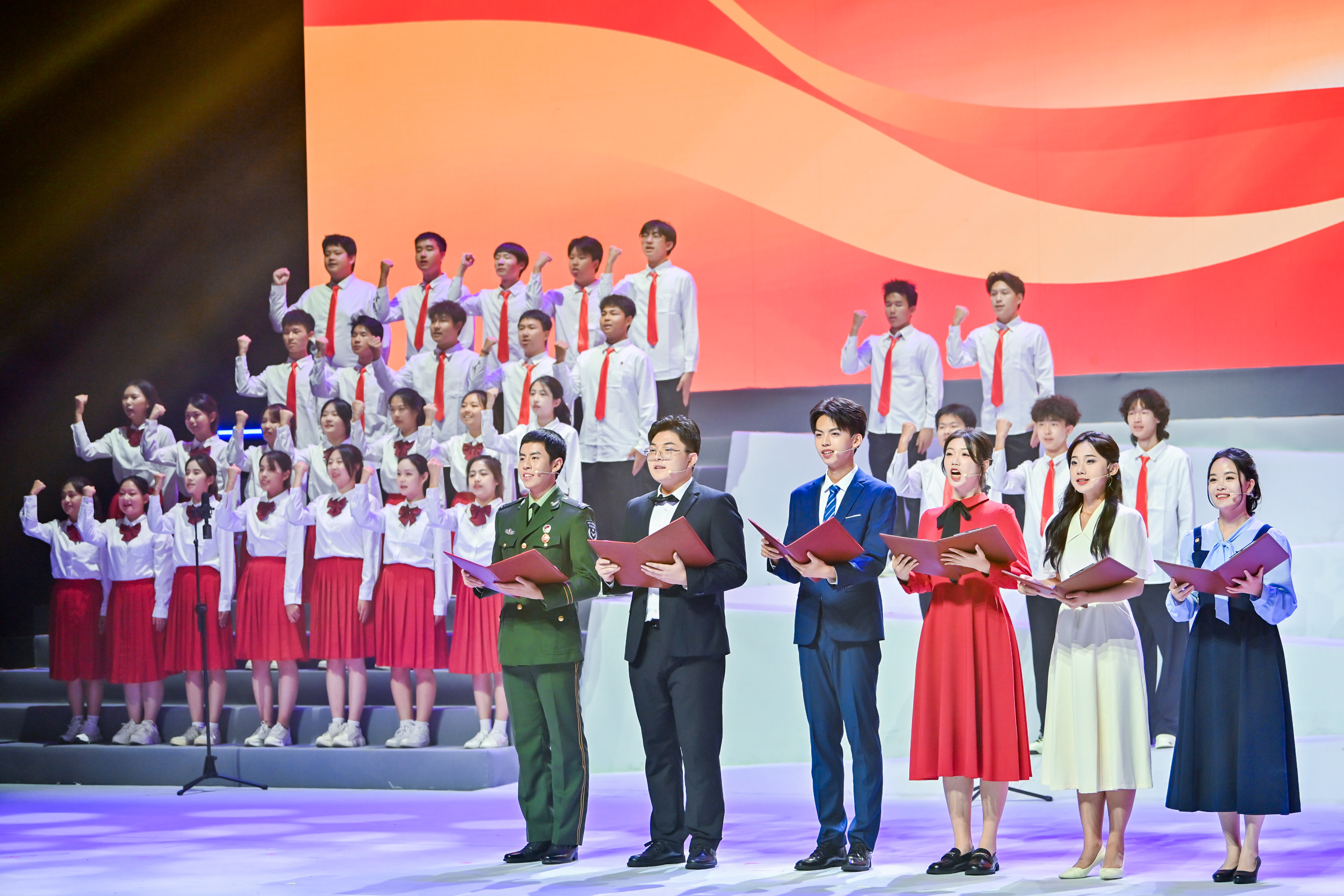 本次活动围绕“九州怒·烽烟起”“烽火烈·同袍行”“山河兴·新程启”三个篇章,立体呈现烽火岁月中华夏儿女的英勇事迹。从舞蹈《山河觉醒》的悲壮,到情景诗朗诵《抗战家书》的深情,从话剧《烽火讲堂》的坚守,到《青春誓言 强国有我》的担当,大中小学师生携手打造了一场跨越时空的“信仰对话”。活动尾声时,合唱《歌唱祖国》点燃全场,掌声经久不息,共同唱响了“我和祖国共成长”的坚定信念,更生动展现了上海师生为实现中华民族伟大复兴接续奋斗的昂扬风貌。