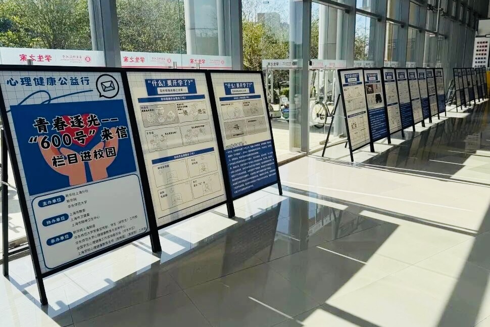 为提升心理健康教育的覆盖面与亲和力,华东师大在两校区同步启动“青春逐光——‘600 号来信’栏目进校园”科普展览,将深受青年群体关注的心理健康内容转化为可感可触的线下体验。